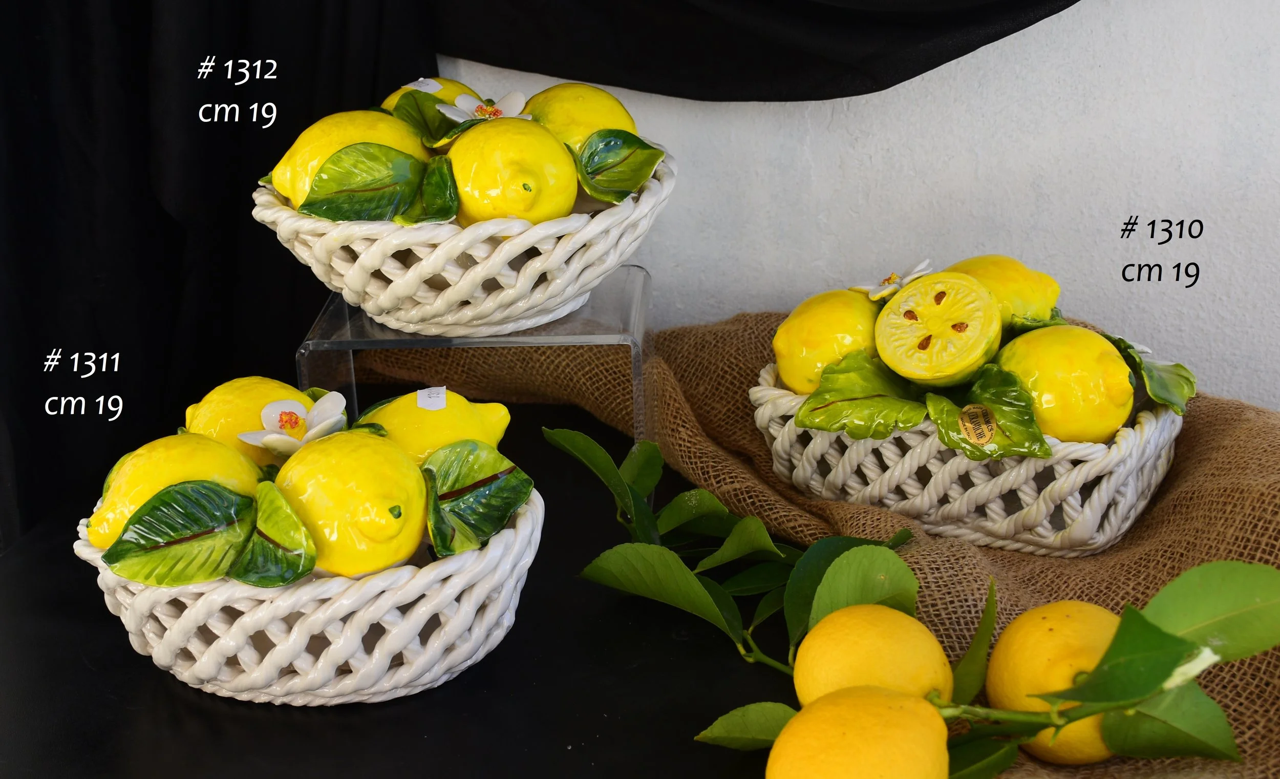 Poznaj Kosze z Owocami i Paterki z ceramiki, w całości wykonane ręcznie techniką Spaghetto i Wstążki. Możliwość personalizacji cytrynami, wiśniami, warzywami mieszanymi lub czosnkiem i papryczkami. Każdy egzemplarz to klasyka włoskiej tradycji, ręcznie zdobiona i wyjątkowa praca naszych rzemieślników.