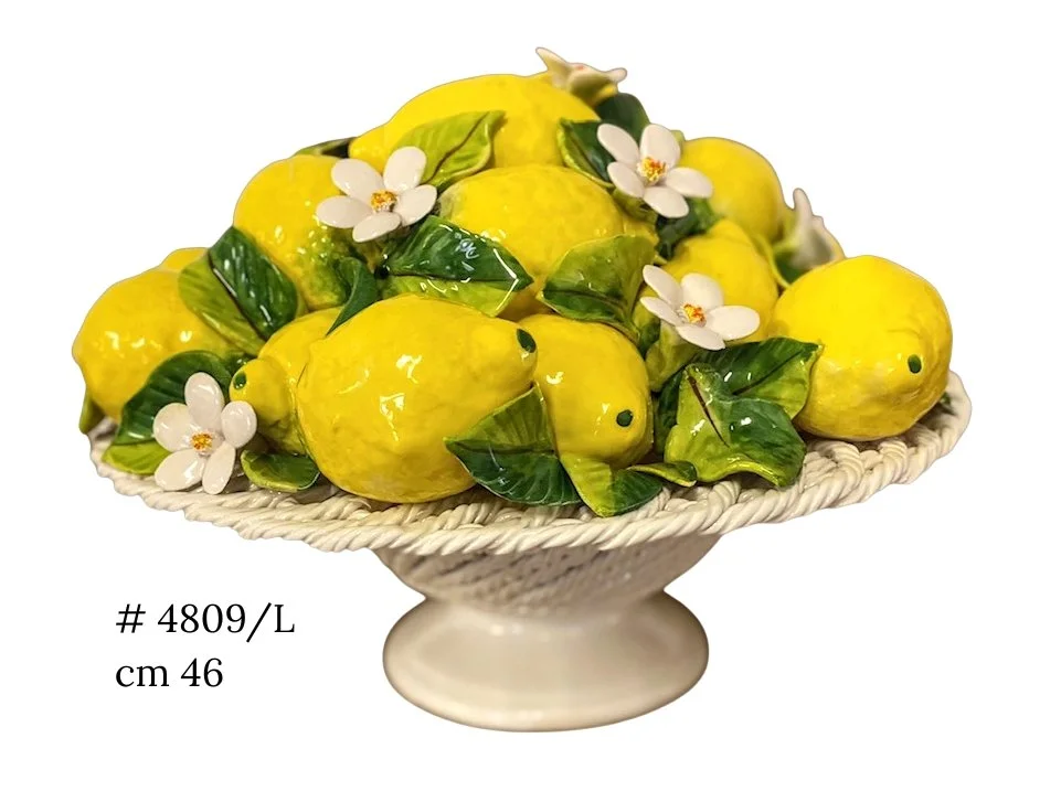 Jeden z naszych Wielkich Klasyków stworzony w naszych pracowniach w latach 70. wraz z projektantem Frimino (Mimmo) Tartaglia z Ceramiche Dalla Robbia, a następnie powielany przez wszystkich producentów w regionie. Pierwszy pomysł i jego oryginalność należą do nas. W Kolekcji Giotto znajdziesz inne Kreacje z Owocami Mieszanymi. Jeśli szukasz konkretnie Pomysłów na Prezenty z Cytrynami, sprawdź Linię Canova.