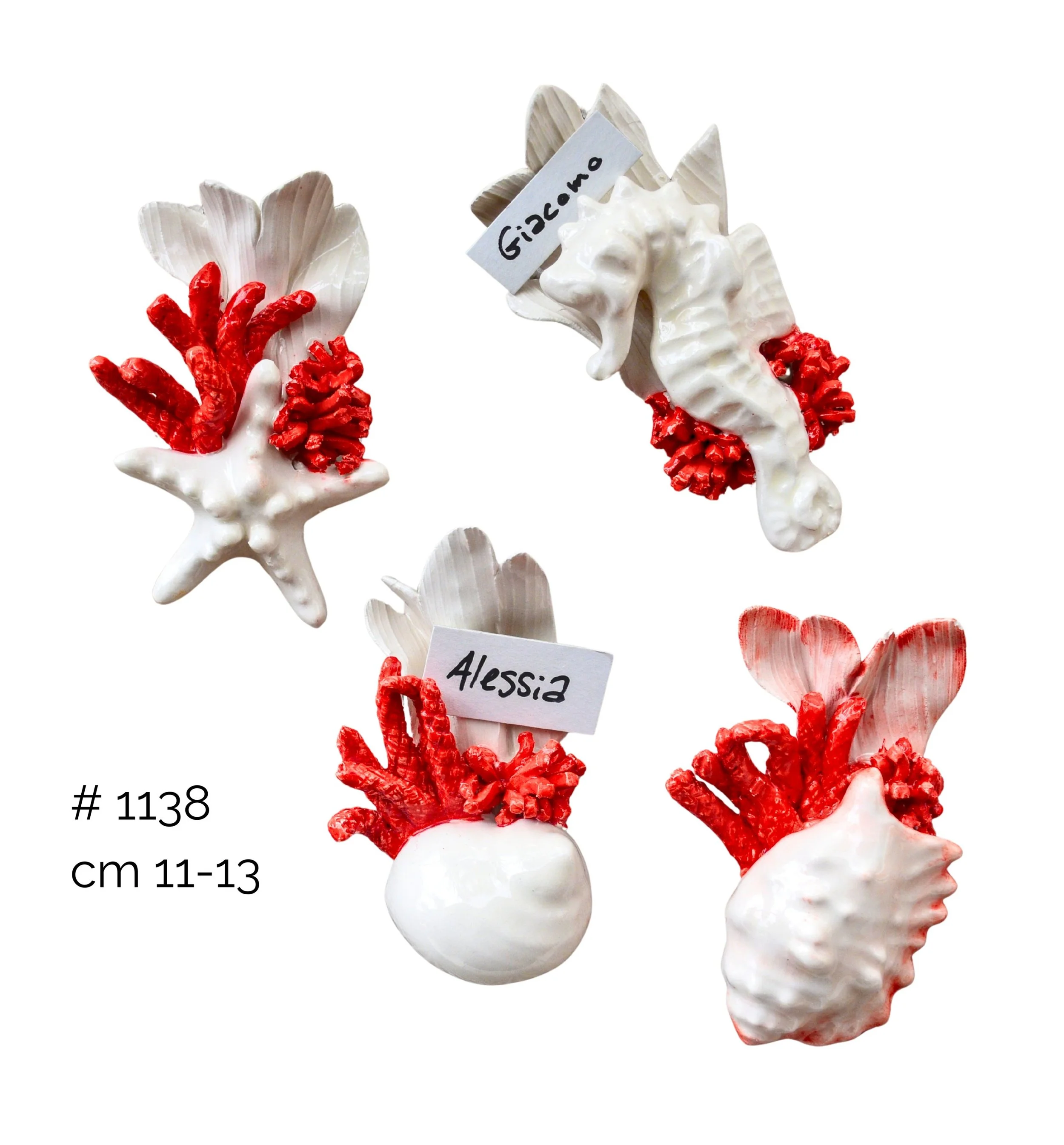 Kolekcja Muszli – Ręcznie Malowane Ceramika z Czerwonymi Muszlami, Wazy, Kosze i Świeczniki