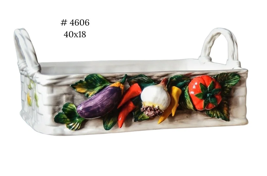 Kaskady Owocowe, Kosze, Torebki, Zegary, Stoliki Kawowe, Kosze Spaghetto i wiele więcej. Pomysły na Prezenty i Akcesoria do Domu z Ceramiki z aplikowanymi Owocami Mieszanymi, w całości Ręcznie Dekorowane przez naszych rzemieślników. Personalizowane kreacje z Owocami Mieszanymi, Owocami Specyficznymi (np. tylko Jabłka), Warzywami Mieszanymi, Warzywami Specyficznymi (np. tylko Dynie) lub z Czosnkiem i Papryczkami Chili.