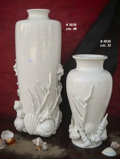 Discover the shells collection in maiolica: handmade ceramic vases, baskets, candle holders, and decorative accessories with applied shells, perfect gifts and home decor.