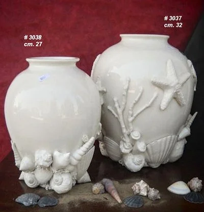 Scopri la collezione conchiglie applicate in maiolica: vasi, cesti, portacandele e accessori per la casa in ceramica fatta a mano, perfetti come idee regalo.